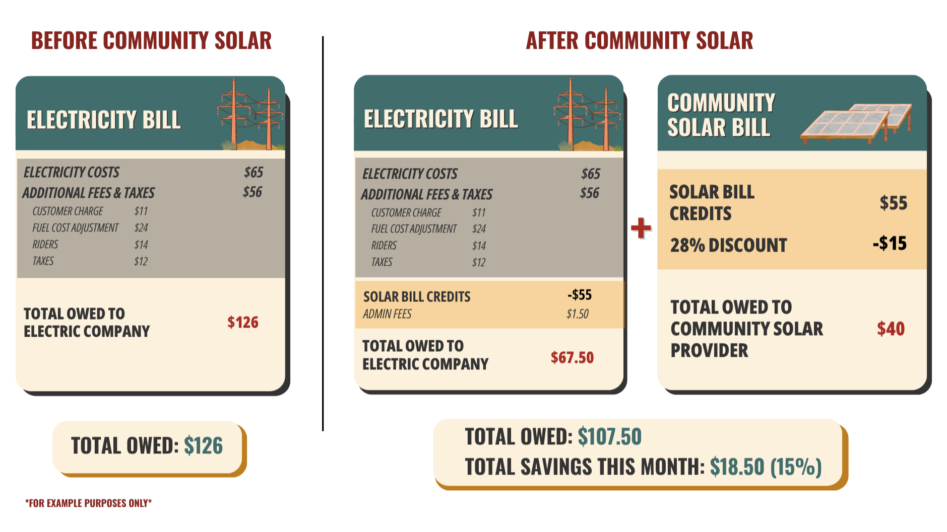 Despite receiving two bills, your total monthly cost will be less than your current electricity bill.